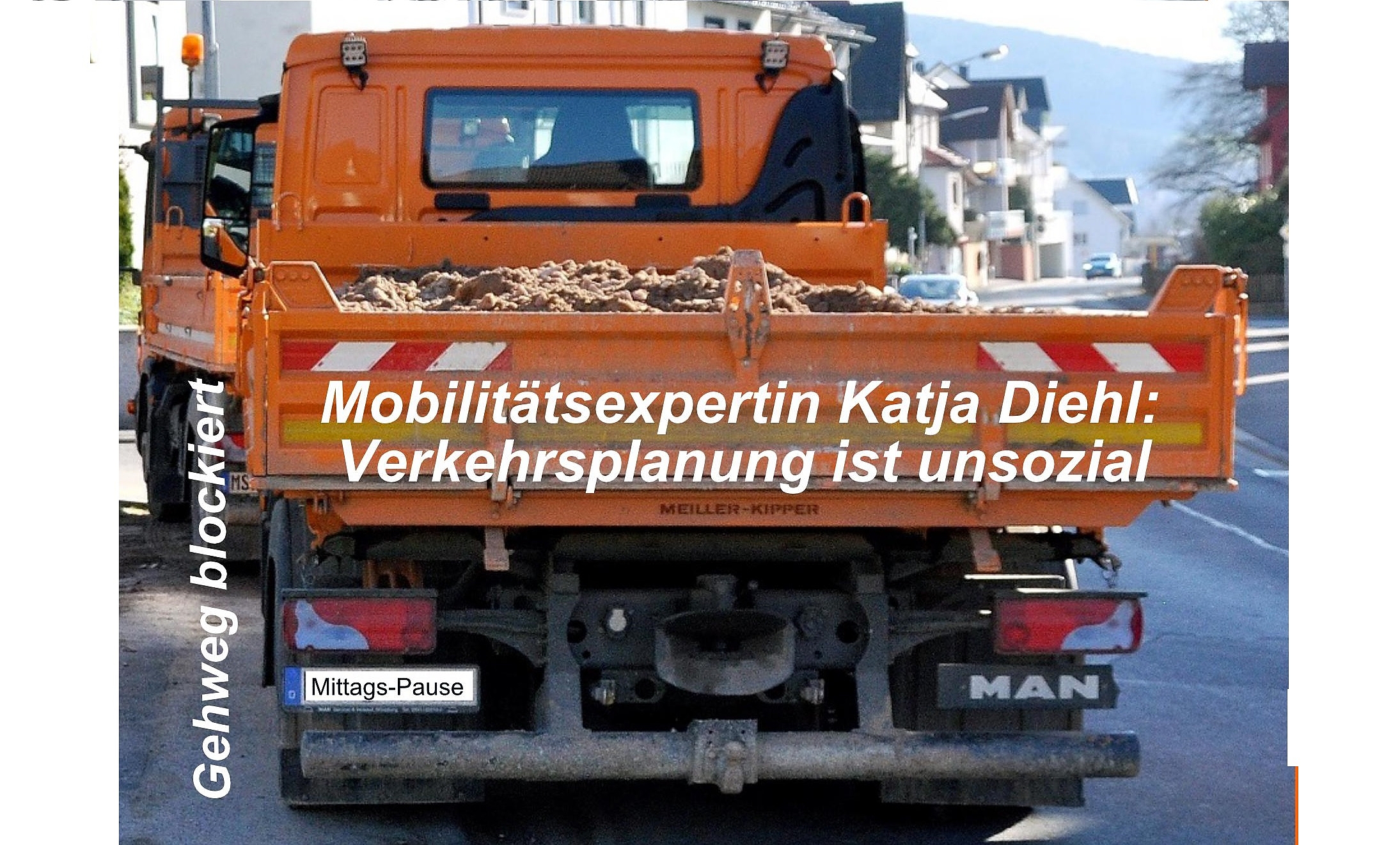 Mobilitätsexpertin Katja Diehl: Autozentrierte Verkehrsplanung ist unsozial Rechtsverstöße (z.B. Gehwegparken) dürfen von der Stadt Aschaffenburg nicht weiter geduldet werden!