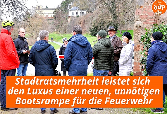 Die Zeit der goldenen Wasserhähne ist für die städtische Haushaltsplanung längst vorbei. Dennoch ist die Stadtratsmehrheit der Meinung, wir könnten uns den Luxus einer neuen Booteinlassstelle für mehr als 1,3 Mio € (geplante Kosten, die bis zu einer Realisierung sich möglicherweise verdoppeln) leisten. Längst widerlegt ist das Argument, die Feuerwehr wäre auf eine neue Booteinlassstelle angewiesen. 1. Die gebotenen Einsatzzeiten könnten nicht eingehalten werden. Falsch: Die Booteinlassstelle am Theoderichstor ist vergleichbar schnell erreichbar wie die bisher vorgeschlagenen Alternativen. 2. Das Tor sei zu eng für Feuerwehrfahrzeuge. Falsch: Selbst die großen Feuerwehrfahrzeuge passen knapp durch das Tor. Zudem gibt es bei der Feuerwehr auch schmälere Fahrzeuge, um Bootsanhänger ziehen zu können. 3. Die Zufahrt über den Schlossberg sei zu eng. Halbwahr: Zu eng ist der Schlossberg nur, wenn verkehrswidrig geparkt wird, wogegen die Stadt konsequenter vorgehen kann. Außerdem bleibt der breite Fußweg am Main, der nie zugeparkt ist. Und schließlich hätte es noch die Suicardusstraße gegeben, von der aus eine sehr breite Rampe zur bestehenden Booteinlasstelle führt. Allerdings hat sich die Stadtratsmehrheit ohne Not gegen diese komfortable und günstigste Variante entschieden. Ganz im Gegenteil: Im neuen Plan für die Schlossufergestaltung, ist vorgesehen, diese Rampe zu beseitigen...